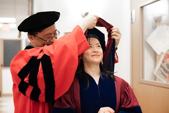 Yitian attended the "makeup" commencement! Congrats, Dr. Zhou!